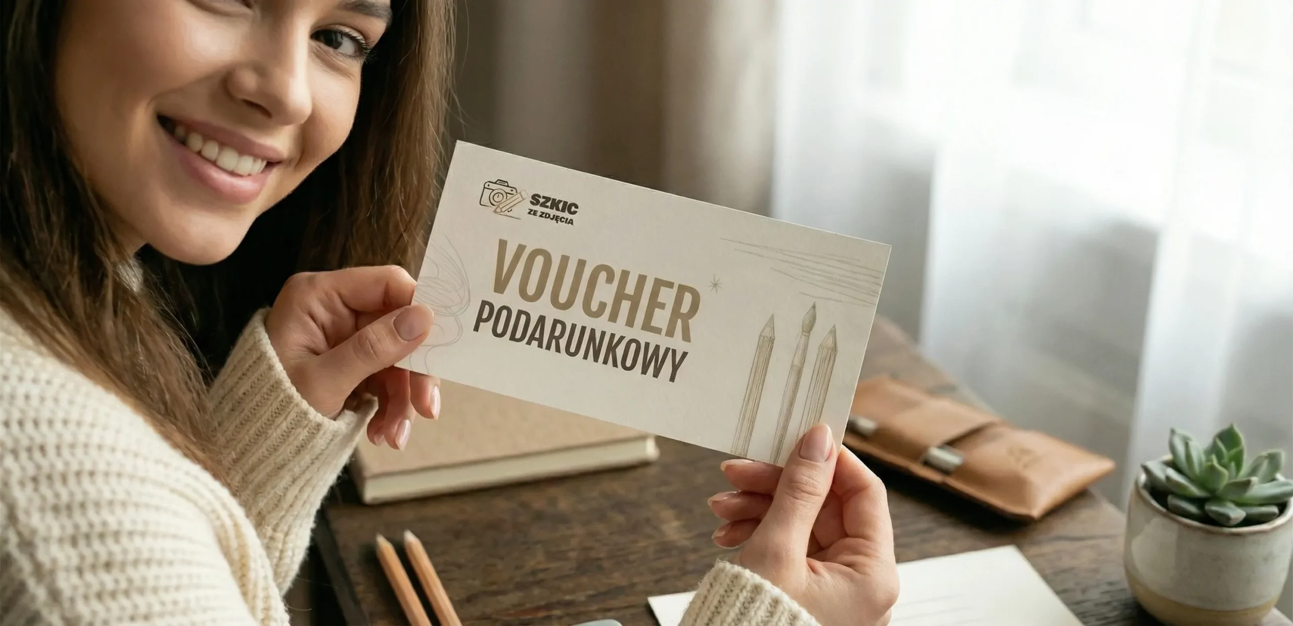 Voucher podarunkowy na szkic ze zdjęcia to bezpieczny i elegancki prezent na każdą okazję.