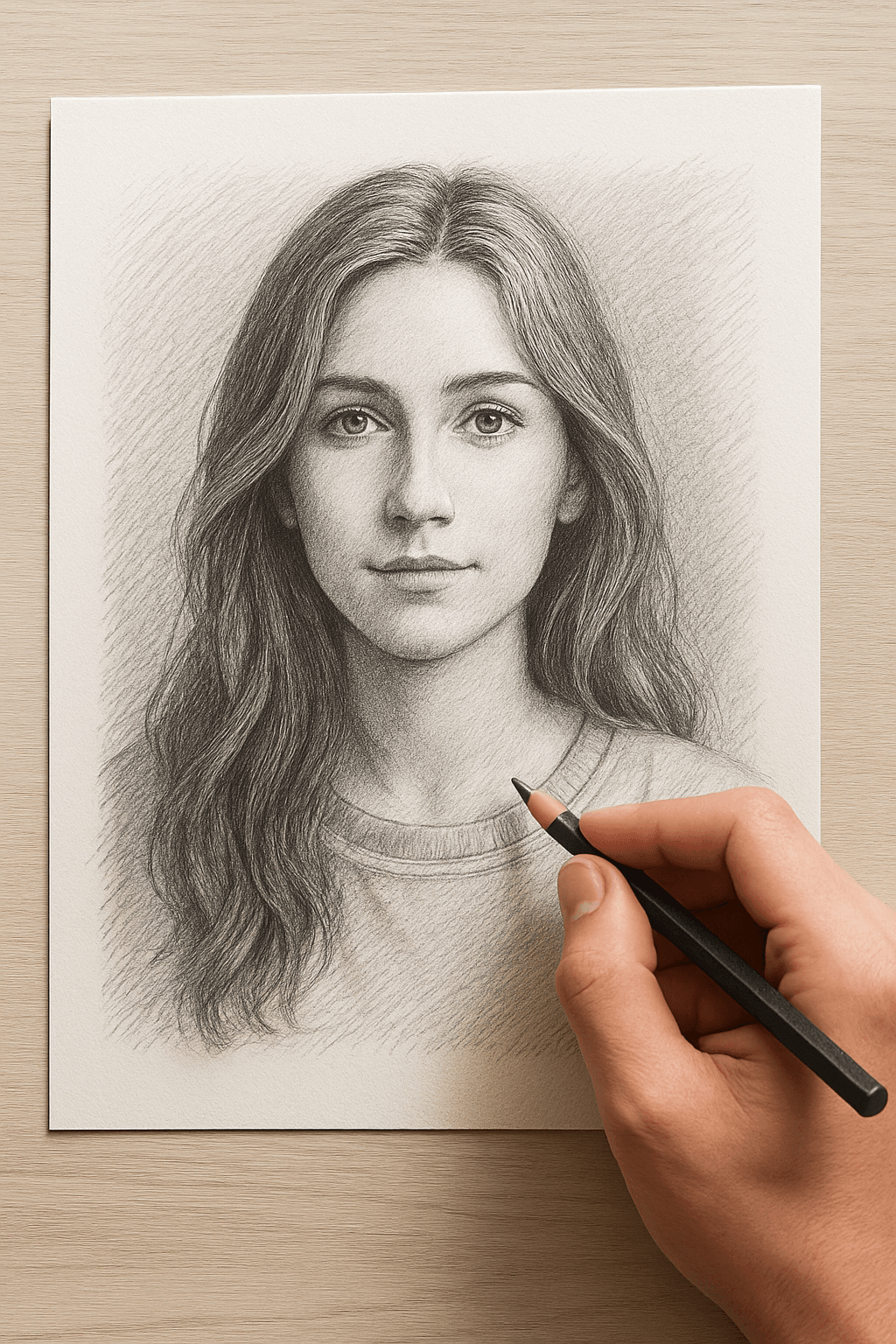 Wyjątkowy szkic, od podstaw wykonany ręcznie przez profesjonalnego artystę. Każda praca jest unikalna i pełna emocji. Każdy projekt wyceniany indywidualnie.